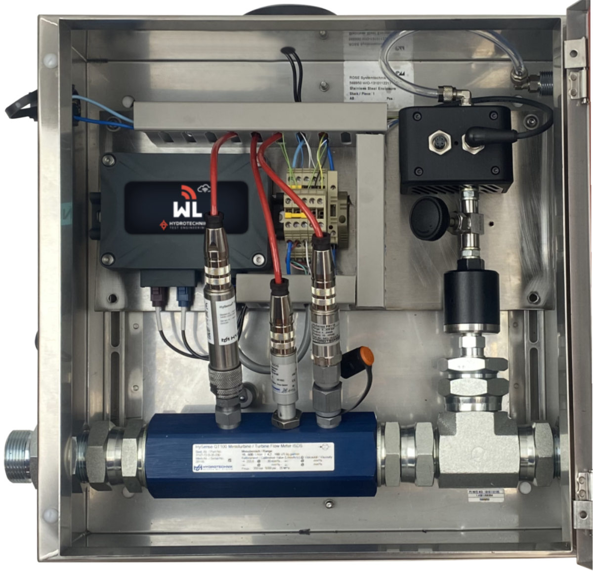 産業環境向けの堅牢なキャビネットを採用し、IN/OUT外部ポートを介して油圧ユニットに簡単に接続することが可能です。流量センサーの接続配管径(In/Out)と、筐体の全体サイズは、選択する流量センサーのモデルにより異なります。保護等級:IP66