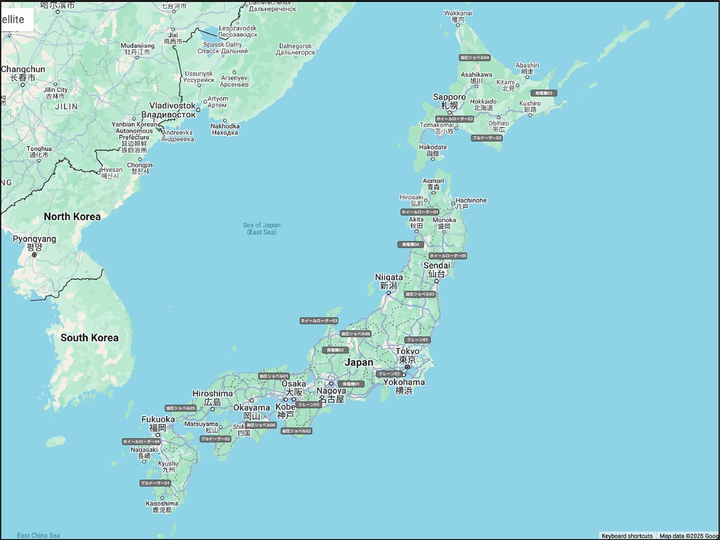 Googleマップ上で、お客様毎にアカウントを作成することで、全ての建設機械がマップ上でご確認いただけます。